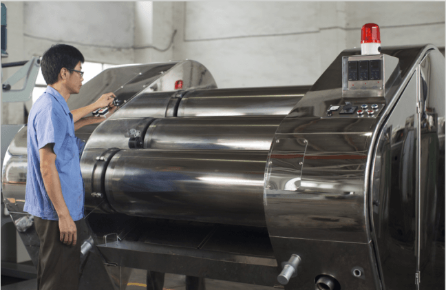 本機采用國內(nèi)獨創(chuàng)集成板塊油路方式,由電磁閥來控制該機的工作狀況,壓緊與松開響應(yīng)速度快,壓力均勻,控制方便。研磨物料的各種細度通過調(diào)節(jié)壓力獲得;油路采用特制接頭,確保不泄漏,并方便維護與拆裝;輥筒采用專用特殊合金材料澆鑄,表面具有高強度和耐磨性。